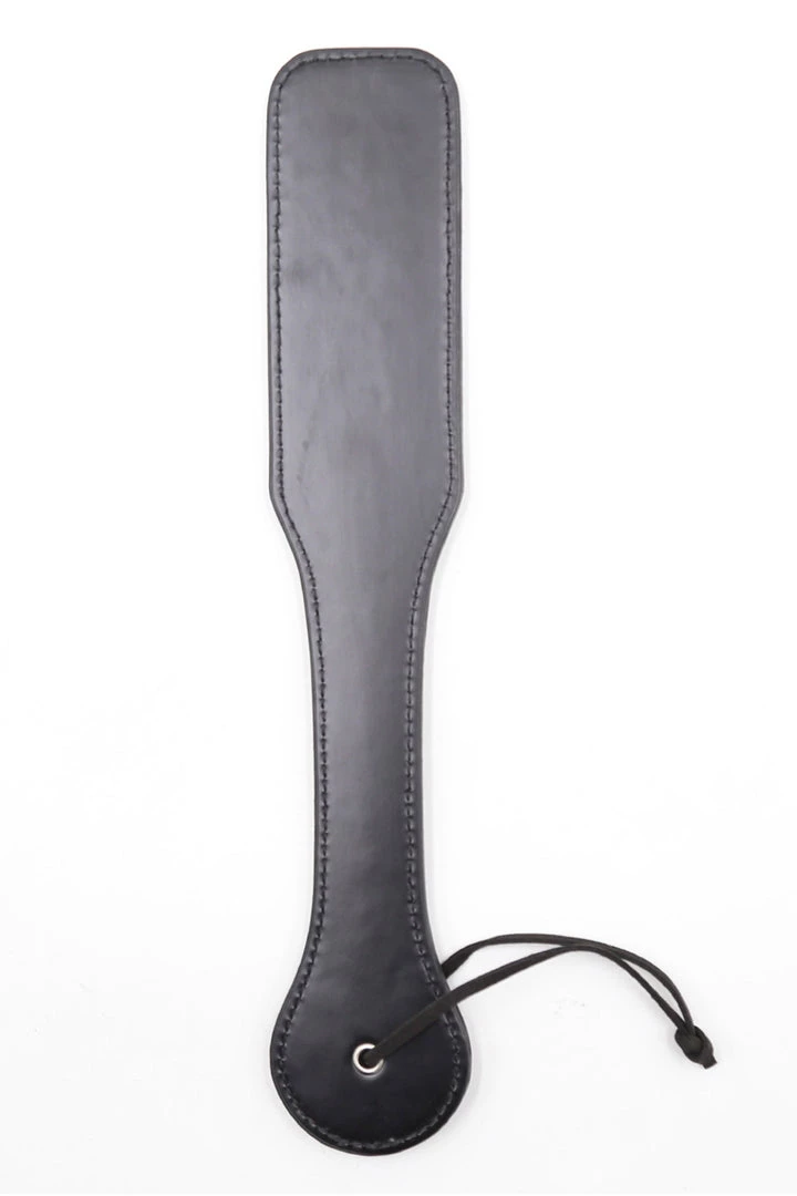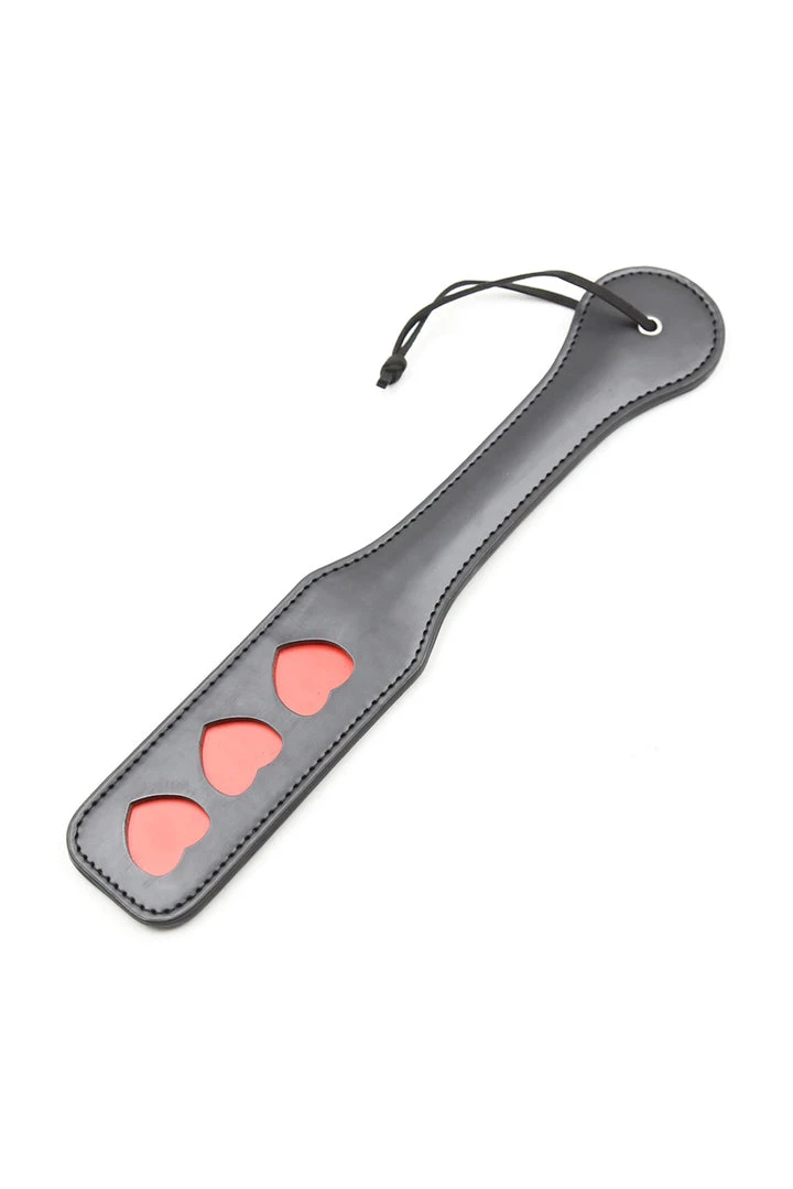 Make your night one to remember with this black paddle with red heart details and strap.
