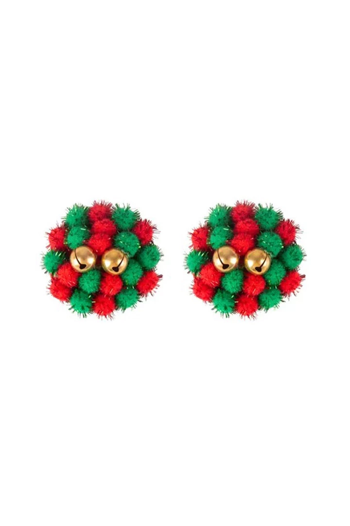 These green and red Christmas pom pom pasties feature gold jingle bells.