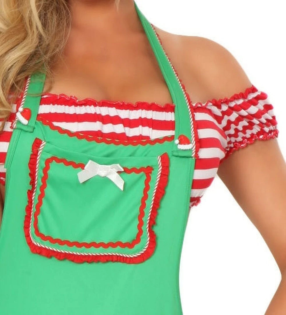 While wearing this enticing Elf Costume your fellow elves and Santa himself will surely have a “hard” time focusing on their duties. That goes the same for those who attend any party or other social holiday gathering. All eyes will be on you and sensual thoughts of working with you until the wee hours of the morning will be prevalent in their heads. Let your fantasies run wild wild while wearing this outfit.