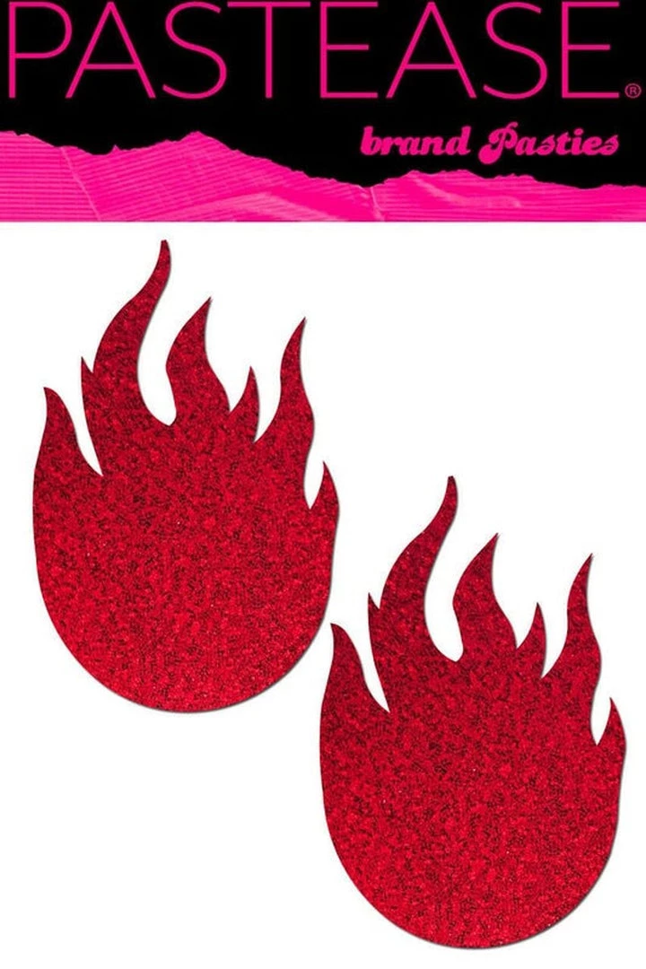 Red Glitter Flame Nipple Pasties by Pastease® are hand-made in the USA of soft form-fitting glittery material that forms seamlessly to curves and resists wrinkling over hardening nipples.