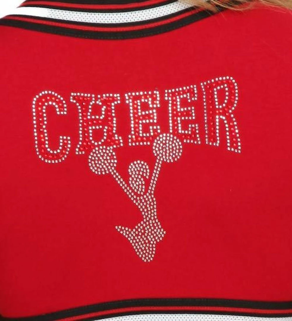 *V Neck Crop Top with Rhinestone “CHEER” on Back and Sporty Wide Stretch Trim