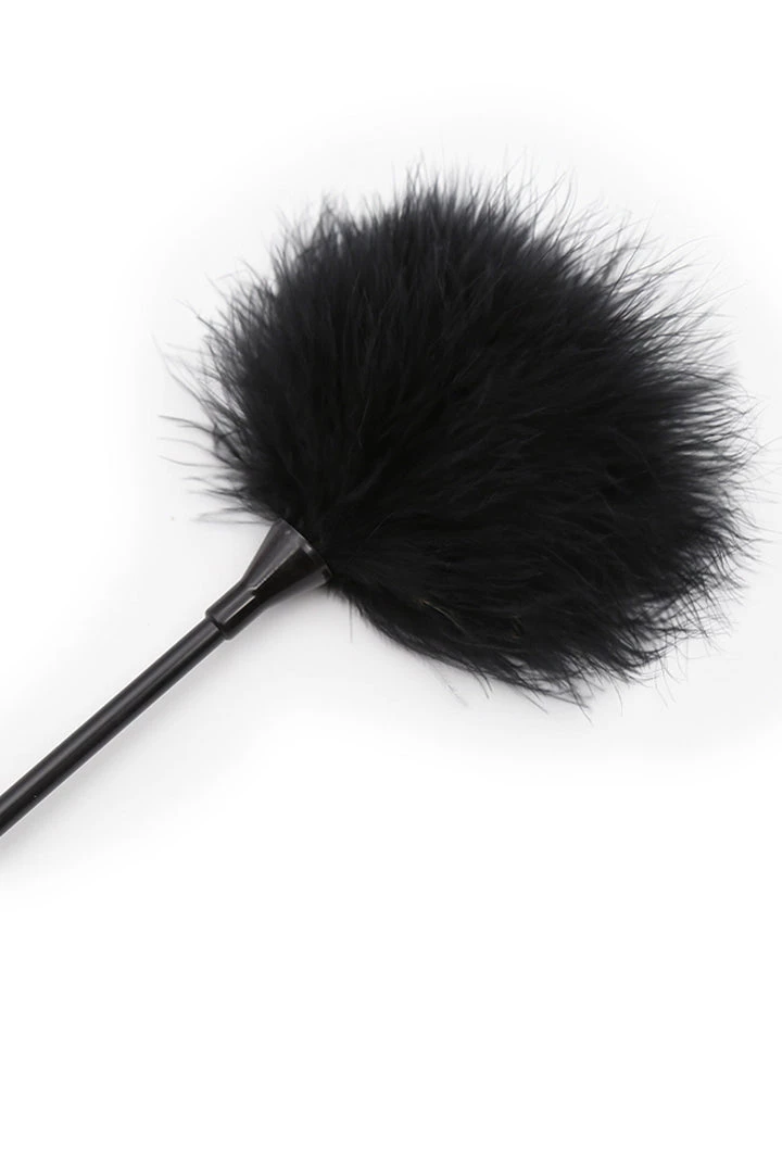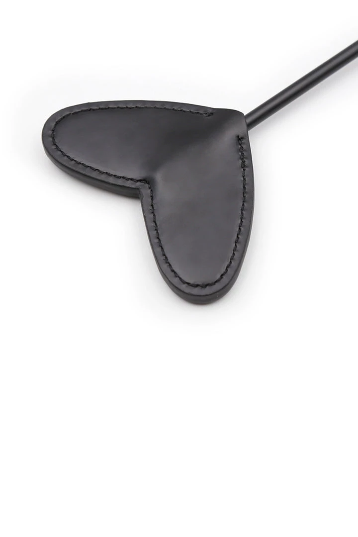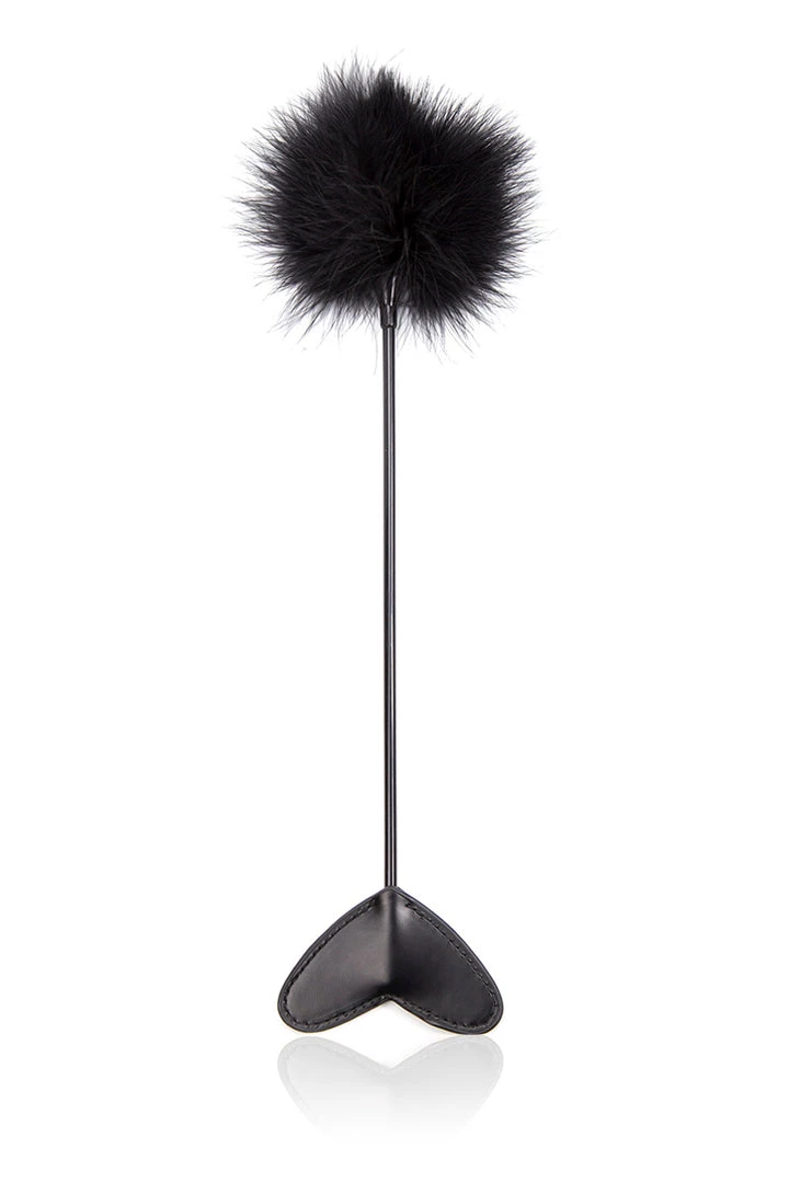 Can’t decide? Do both! This black heart paddle also features a black feather tickler end.