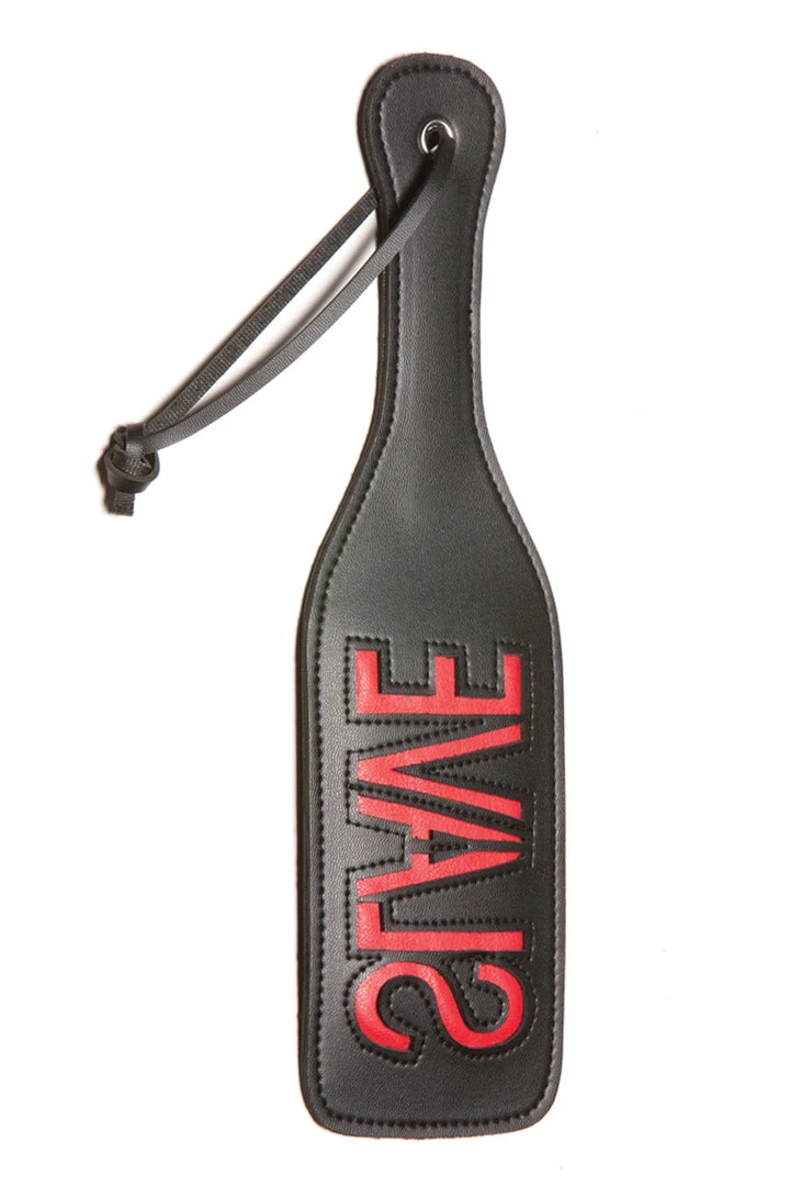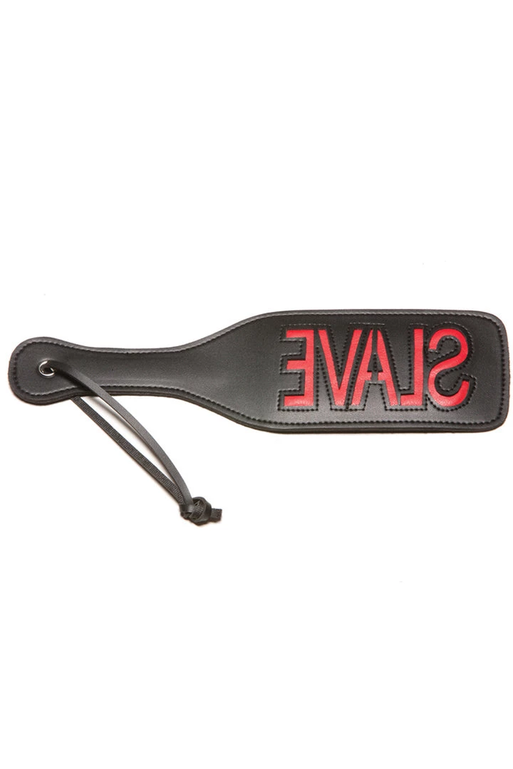 Actions speak louder than words with this ‘SLAVE’ Imprint Spanking Paddle. Discipline your kitten with this paddle that features double sided faux (imitation) leather, flexible ‘give’ at the flick of a wrist, loop wrist for a secure hold, and a recessed cutout of the word ‘SLAVE’ that will leave a mark after spanking.Â