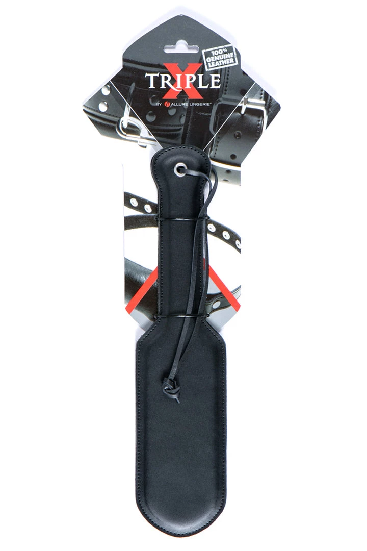 This Triple X Leather Paddle is a soft leather paddle with contrasting hard intent. Featuring double sided leather with a firm interior, this paddle is just what you need to train your kitten.Â