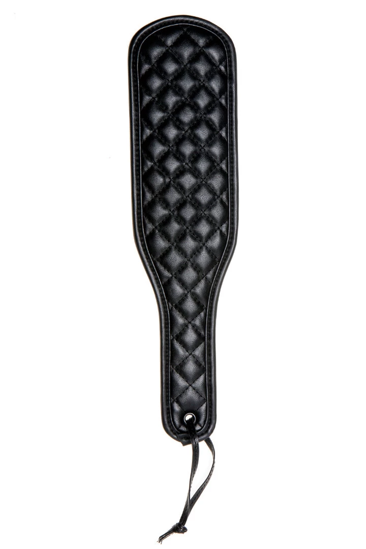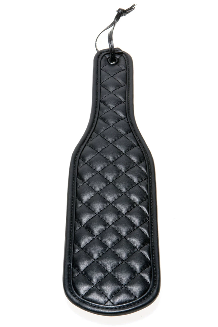 Soft on skin, hard on impact, this X-Play Quilted Paddle features a quilted faux leather paddle with a loop wrist for a secure hold.Â