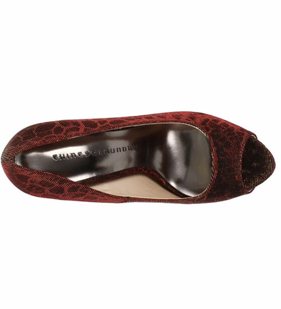 Chinese Laundry Women’s Giraffe Hot Spots Peep-Toe Pump with 4.75″ Heel and a 1″ Platform.