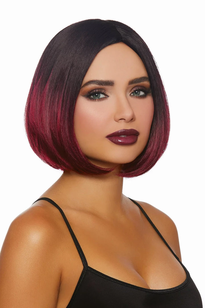 This mid-length, black to burgundy, ombre bob wig is the perfect finishing touch to your look.