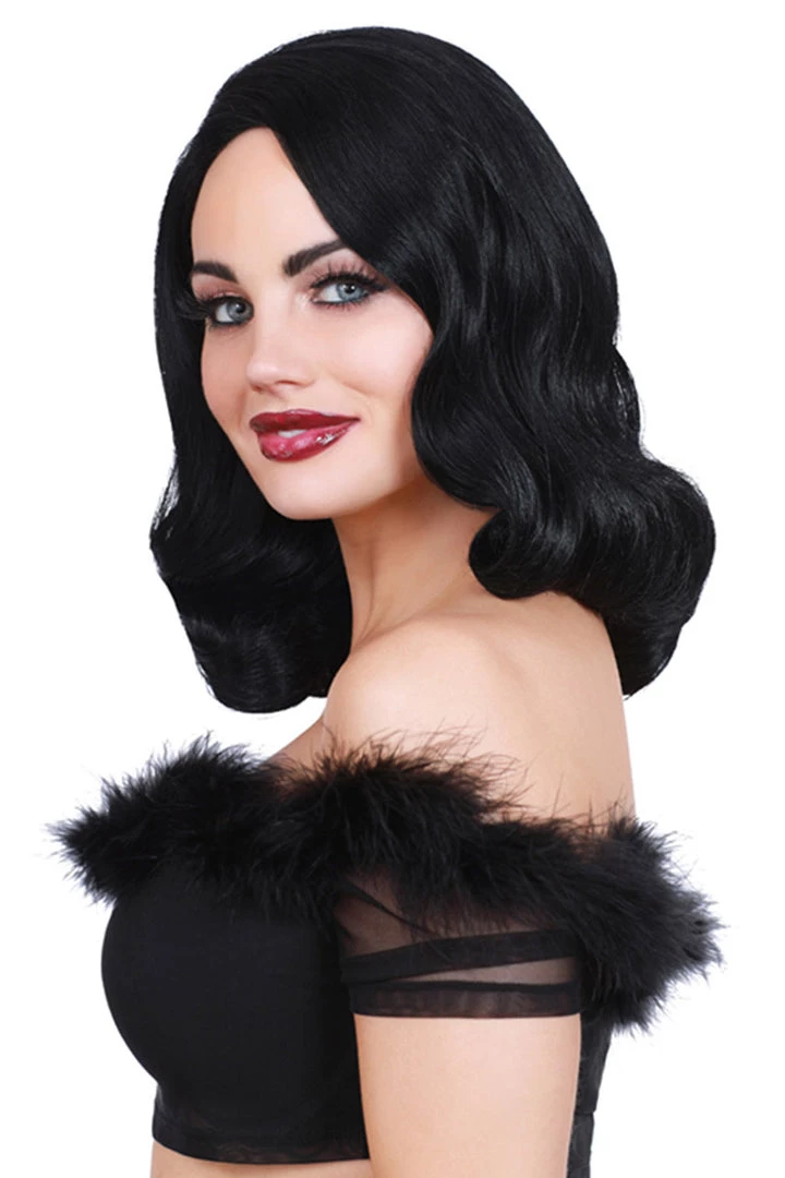 Complete your costume look with this Hollywood glam wig with waves and a side part.