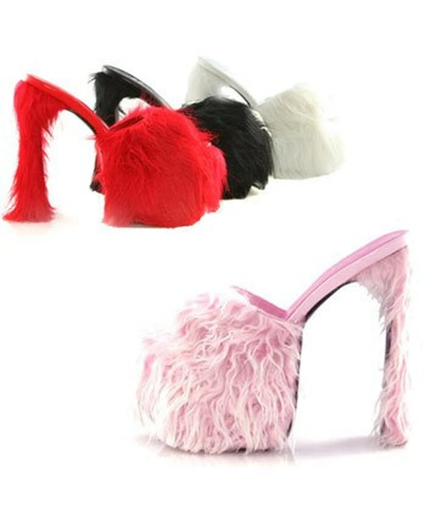 6.5″ High Heel Shaggy Fur Mule Platforms.