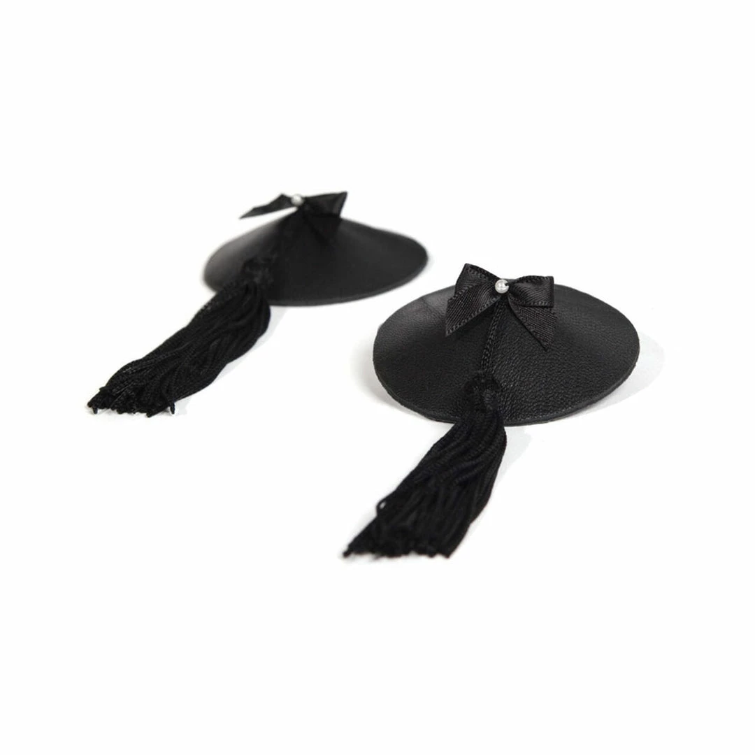 Va-va-voom! You are a vision of glamour and sensuality with these leather and satin tasseled pasties that pay homage to the 19th century stage queen. Each gift box slides open and contains one set of these luxury pasties and adhesive tape.