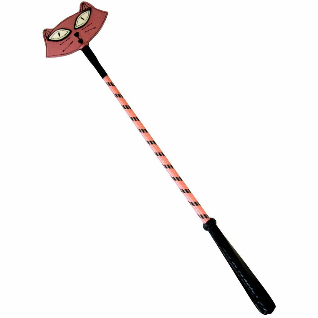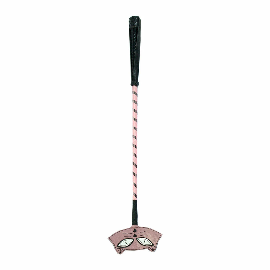 Make your favourite kitty purr as you stroke her tail with this exclusive crop. Handcrafted with a supple leather tip, pink and black nylon covered length of the crop, and a leather braided handle for a firm grip.