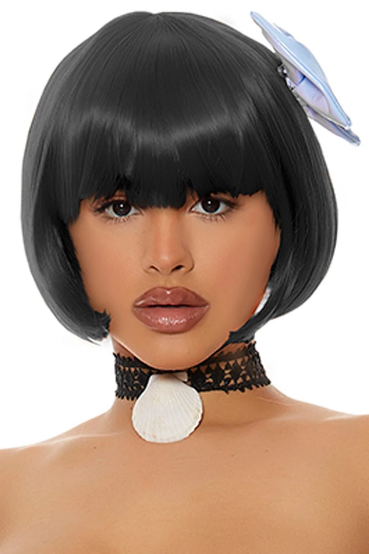 Complete your look with this black, synthetic hair, bobbed wig with front bangs.