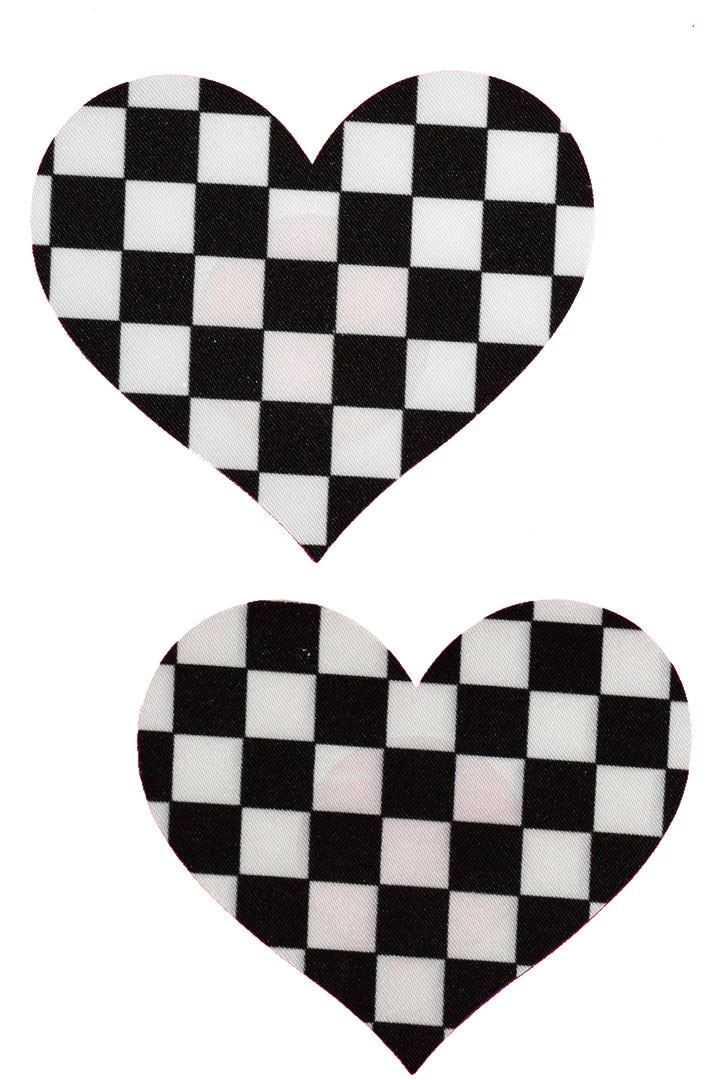 Women’s Black and White Checkered Heart Nipple Pasties. Feature self adhesive tape, just peel and stick on clean, dry, oil-free skin.