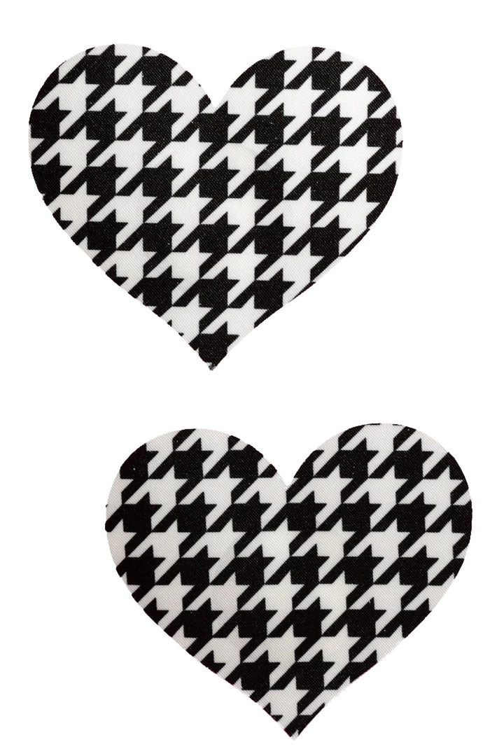Black & White Houndstooth Heart Nipple Pasties. Feature self adhesive tape, just peel and stick on clean, dry, oil-free skin.