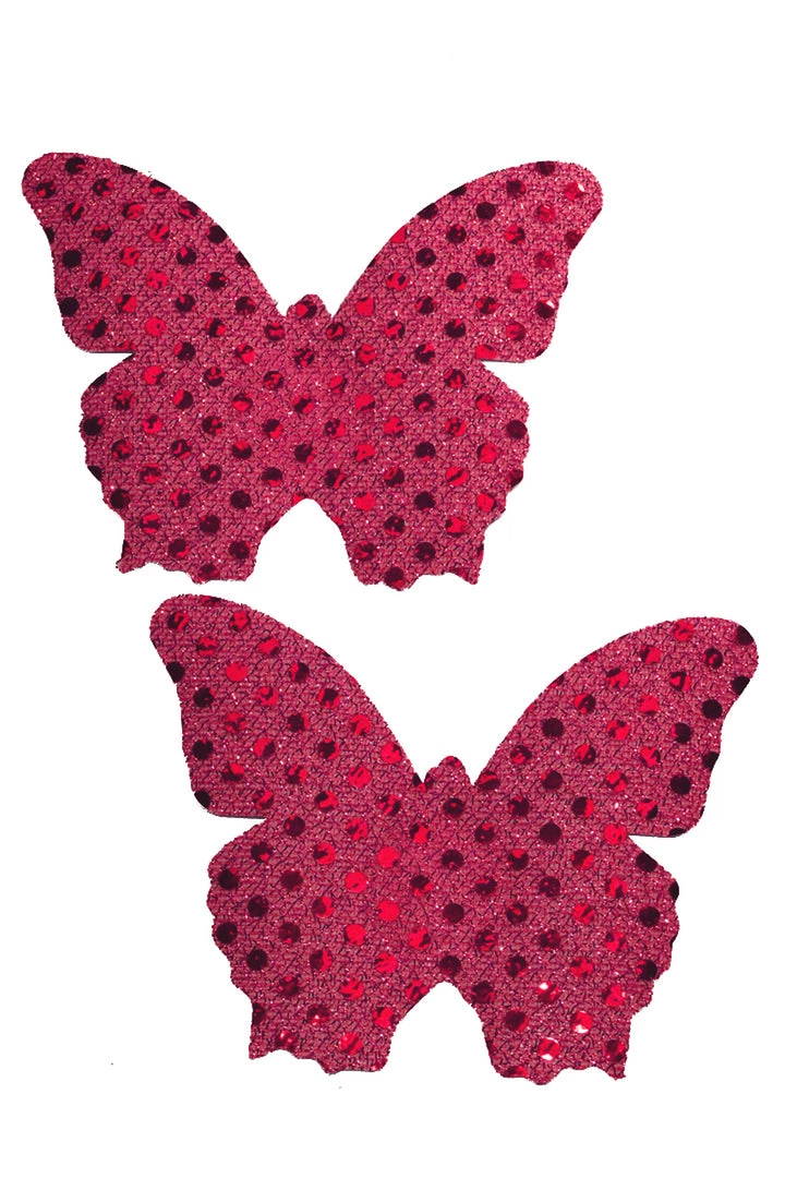 Purple Sequin Butterfly nipple pasties. Features self adhesive tape, just peel and stick on clean, dry, oil-free skin!