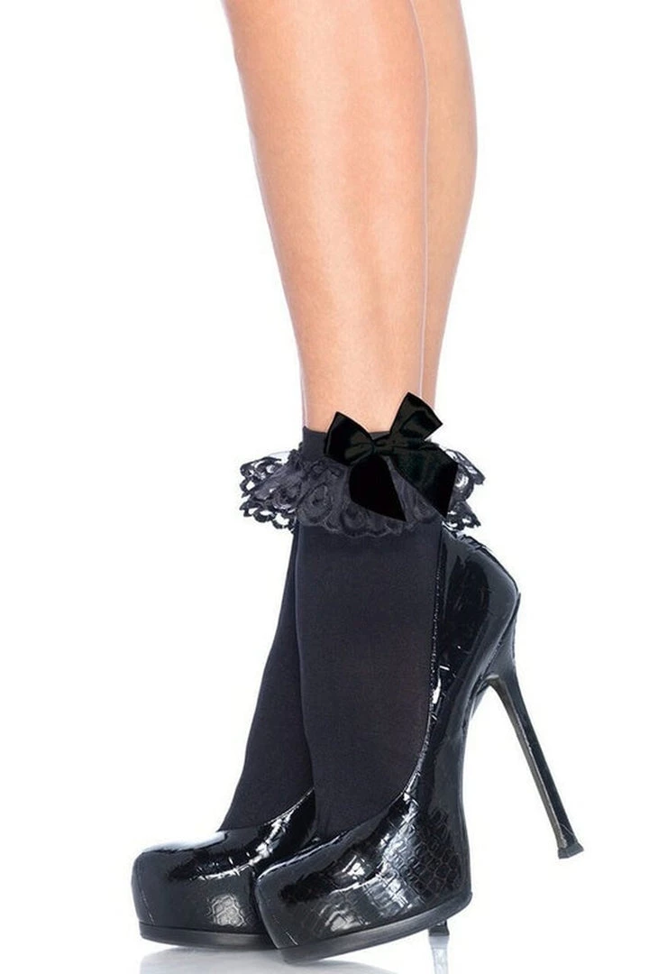 Lace Anklet Socks with Bow Accent.