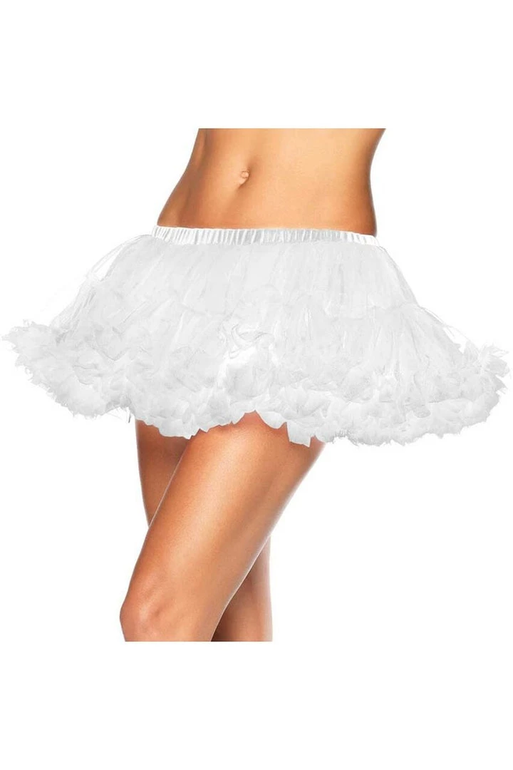 Short and fluffy is this mini chiffon petticoat. Perfect for that sexy costume add ruffled shorts underneath and it makes a great DIY costume.