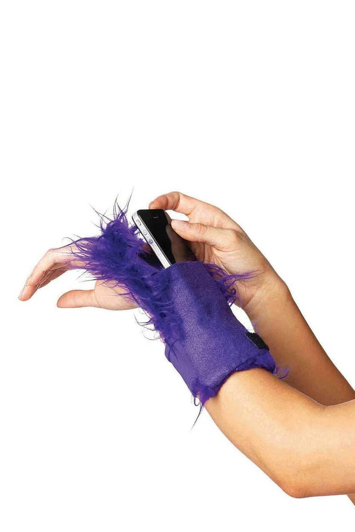 Carry your treasures without having to carry a bag with this fun and fashionable wallet. This faux fur fashion accessory provides the ideal finish to any animal-themed costume or outfit. The fold-over design slips onto your wrist to provide comfortable wear and keep your valuables safe. Available in multiple colors including neon purple, neon pink, green, or turquoise.