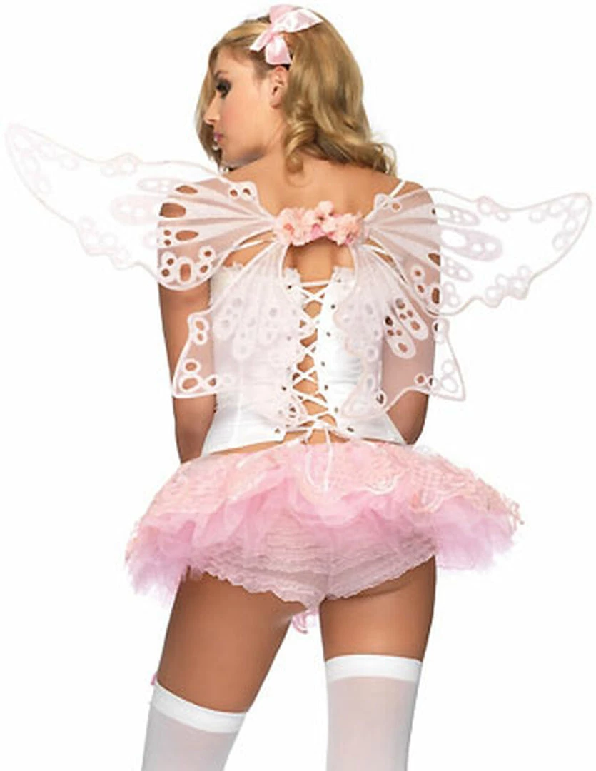 Dainty pink glitter fairy or butterfly wings with rosette detailing in center.