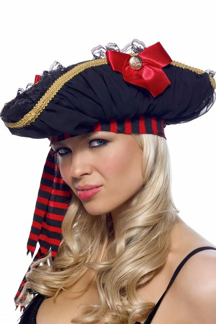 Pirate Hat with Chiffon Rousching, Satin Bows, and Gold Buttons.