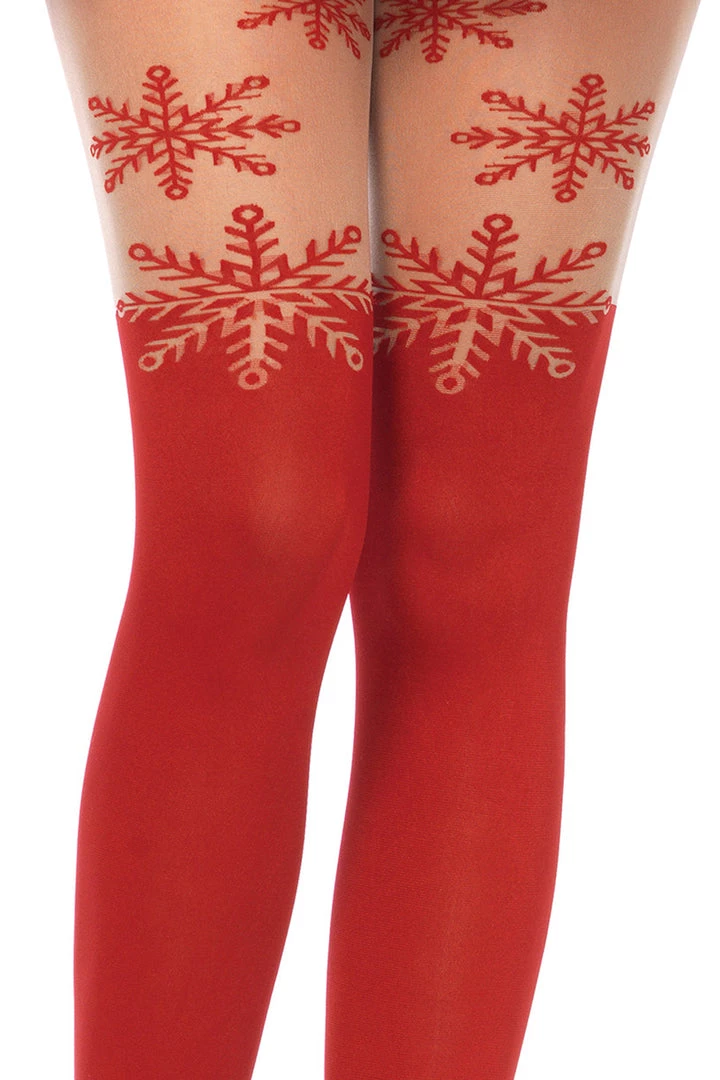 These red and nude, snowflake print tights are the perfect addition to any holiday look.