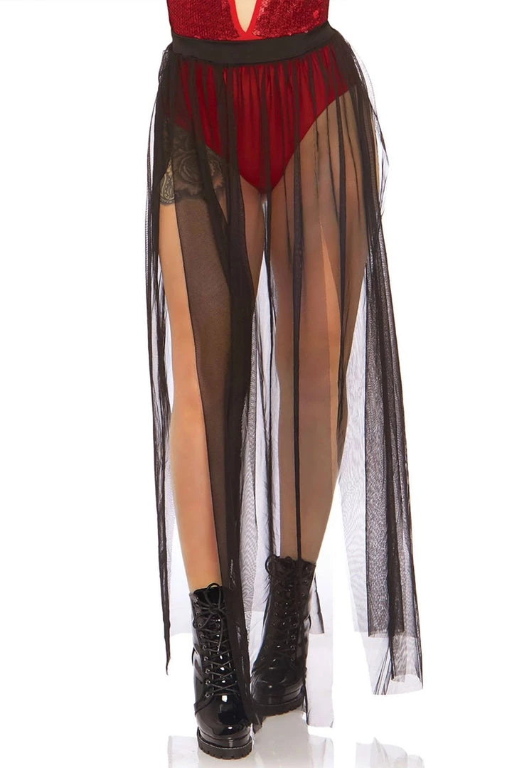 This Multi Slit Black Skirt combines mysticism with fashion. A black stretch waistband connects to sheer mesh black skirt with multiple slits that extend to the ankles. The perfect addition to your DIY witch costume or multi-layered look for a free spirited festival outfit, this skirt is equal parts function and bold! *Includes skirt only.