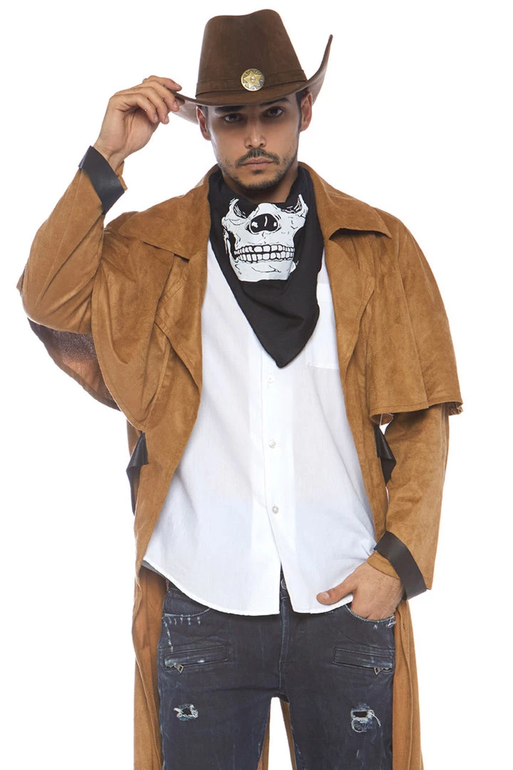 Complete your cowboy costume look with this long faux suede western coat. (Includes coat only.)