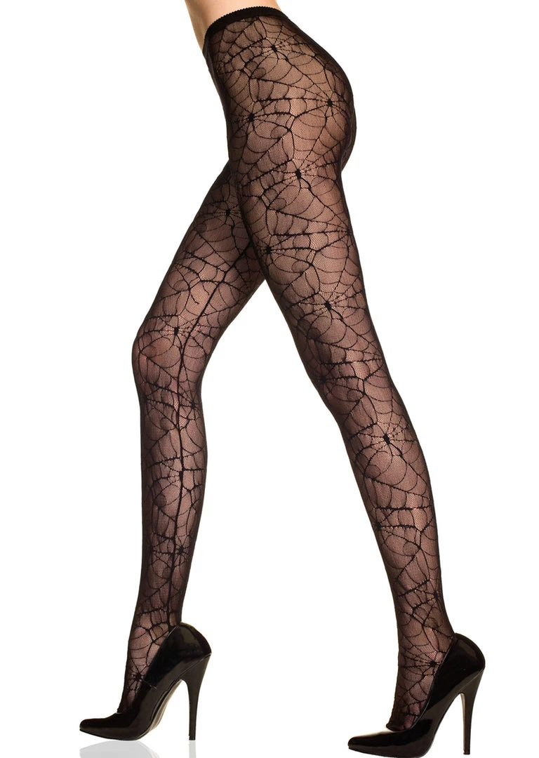 These sheer pantyhose feature a fun spiderweb print.
