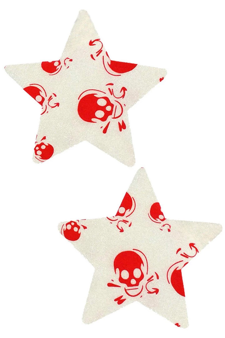 Put stars in his eyes when you wear these Red Skulls Nipple Pasties offered at this Sexy Lingerie Shop. These Nipple Covers feature self adhesive tape making for secure and comfortable wear.