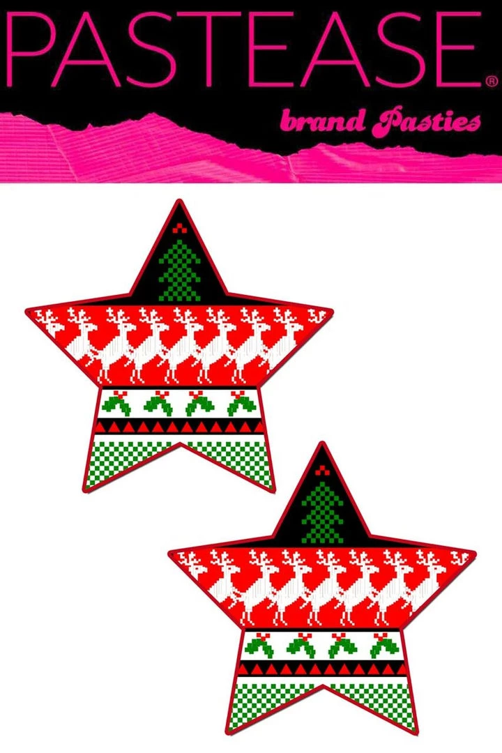 Rockstar: Ugly Christmas Sweater Star Nipple Pasties by Pastease® are hand-Made in the USA of soft yet durable Eco-fi felt material that forms to curves and resists wrinkling over hardening nipples.