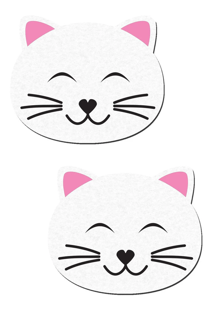 Pet the kitty when you wear these Happy White Kitty Cat Nipple Pasties that feature a durable yet soft Eco-Fi felt material that forms to curves and resists wrinkling over hardening nipples.