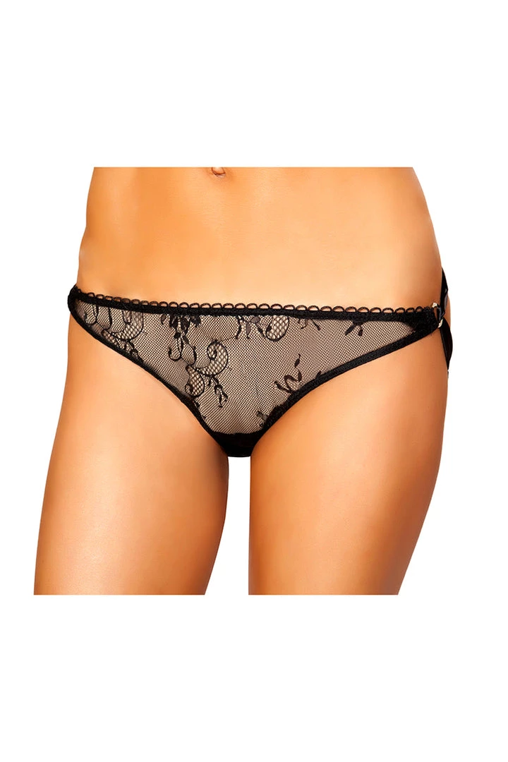 Arouse all the senses with this super sexy lingerie panty that’s all business in the front with a surprise at the back! The front features a solid white panel with sophisticated black lace overlay and eyelet trim that attaches to a super sexy bow detail at the back with two rings at the hips. Your partner’s heart will skip a beat when you turn around, and everything they desire is tied up with a black satin bow!