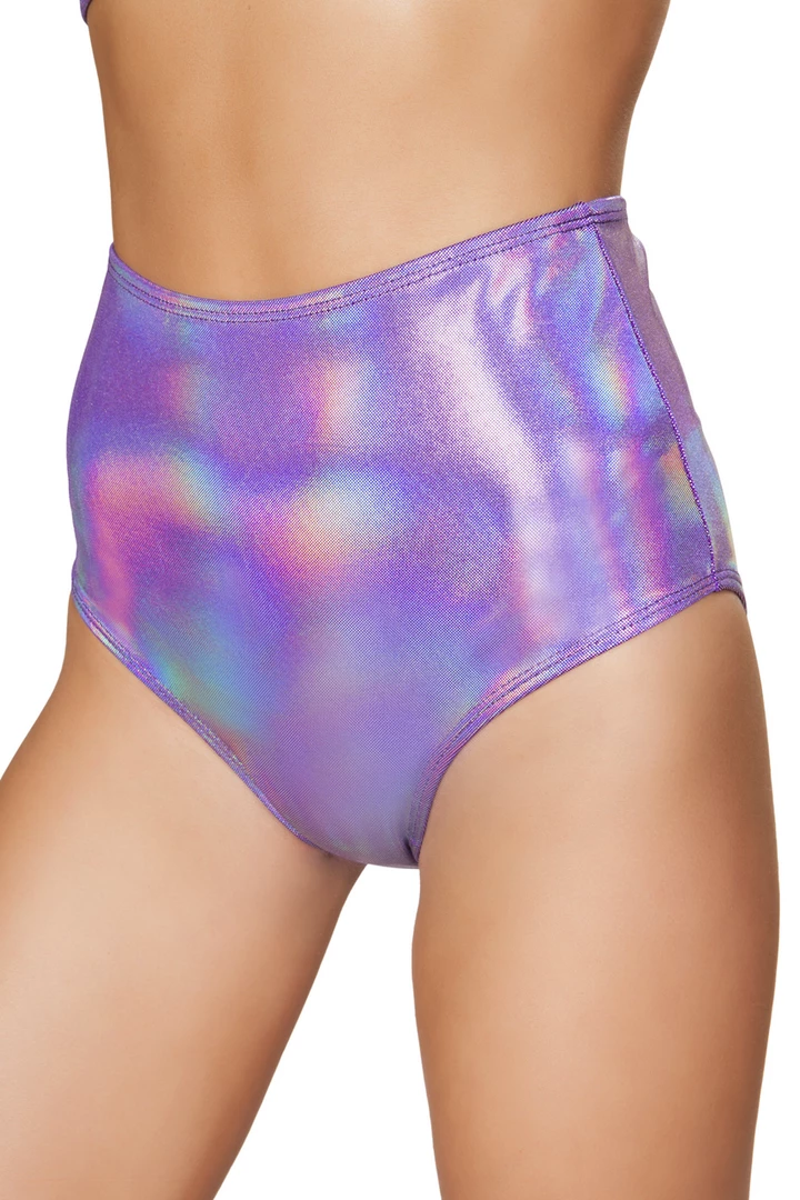 Add a touch of iridescent shimmer with these Iridescent Purple High Waist Shorts that feature soft iridescent purple shimmer material with high waist design, cheeky cut rear, and stretch waistband. *Includes shorts only