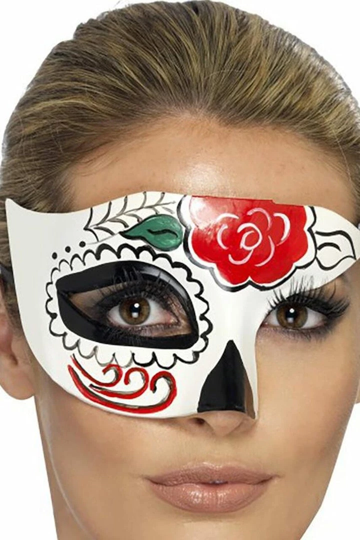 *Painted Day of the Dead Half Mask with Tie Back